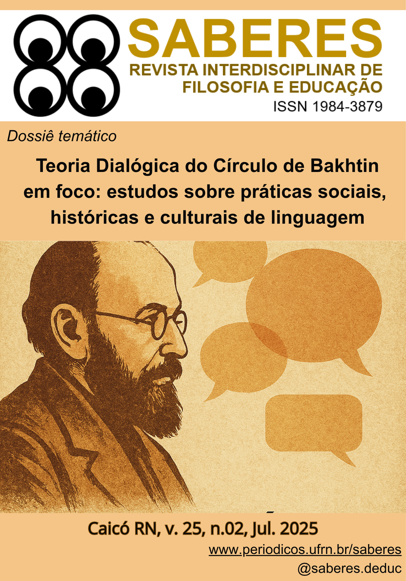 A Saberes: Revista Interdisciplinar de Filosofia e Educação apresenta o dossiê “Teoria Dialógica do Círculo de Bakhtin em foco: estudos sobre práticas sociais, históricas e culturais de linguagem”, organizado pelos professores Dr. Manassés Morais Xavier (UFCG), Dr. Fábio Marques de Souza (UEPB) e Dra. Eliete Correia dos Santos (UEPB).