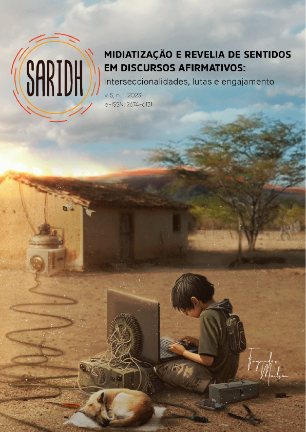 Capa Revista Saridh: linguagem e discurso (v.5, n.1, 2023): Midiatização e revelia de sentidos em discursos afirmativos: interseccionalidades, lutas e engajamento