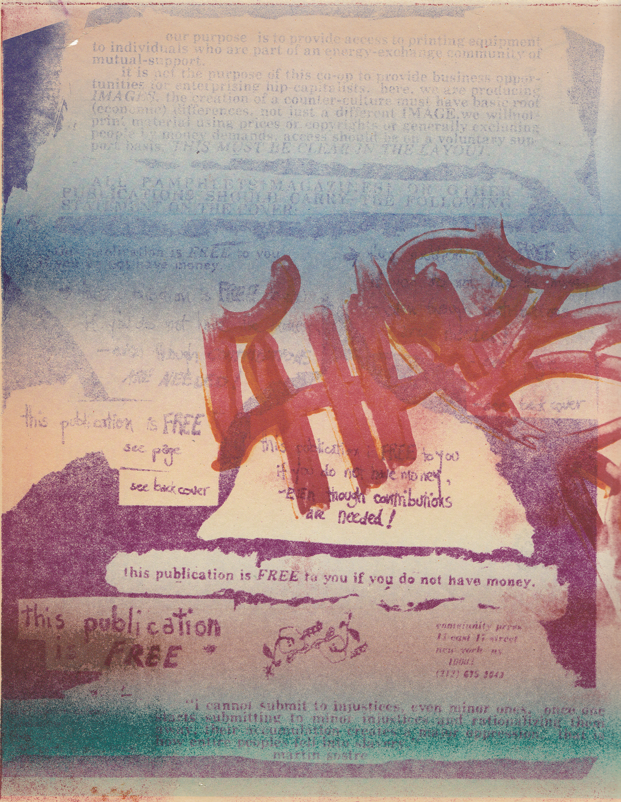 A Come! Unity Press foi uma comunidade anarquista dos anos setenta, nascida em New York, que se inspirava nas ideias de Murray Bookchin, mais conhecido pela sua teoria do “Anarquismo Pós-Escassez”. A Come! Unity Press oferecia acesso livre para publicações variadas de literatura e produção visual, o que a levou a atrair um espectro largo de grupos desprivilegiados e marginalizados pela sociedade: nativos americanos, porto-riquenhos, negros, gays, entre outros. Apesar desta postura, como outros movimentos culturais, o projeto cumpriu “a metamorfose da luta política, de vontade de decidir em objeto de prazer contemplativo, de meio de produção em artigo de consumo” [Walter Benjamin]. A Come! Unity Press foi precursora das culturas alternativas norteadas pelo consumo que vemos hoje. Este artigo sugere paralelos entre a Come! Unity Press e as ideologias do Cubismo e do programa cultural da República Popular da Bavária de 1919.