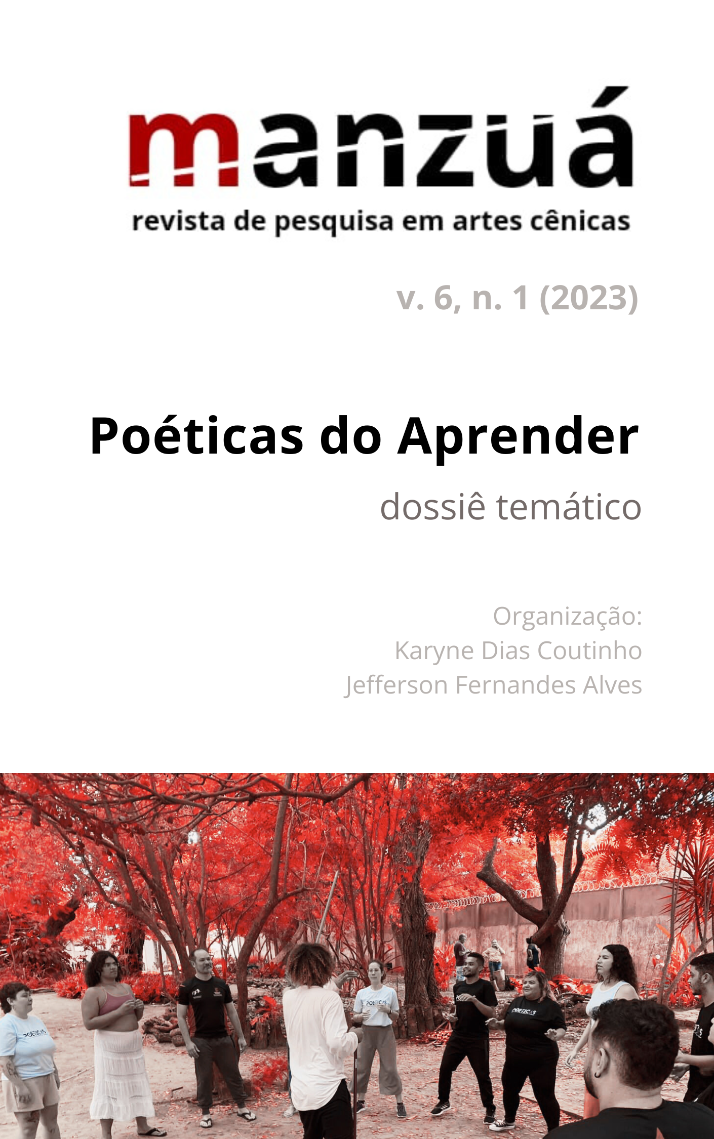 v. 6 n. 1 (2023)O volume 6, número 1, da Manzuá - Revista de Pesquisa em Artes Cênicas apresenta uma coletânea de textos produzidos durante do II CIPA - Colóquio Internacional Poéticas do Aprender, ocorrido durante a Pandemia de COVID-19 e organizado pela Professora Dra Karyne Dias Coutinho e pelo Professor Dr Jefferson Fernandes Alves.