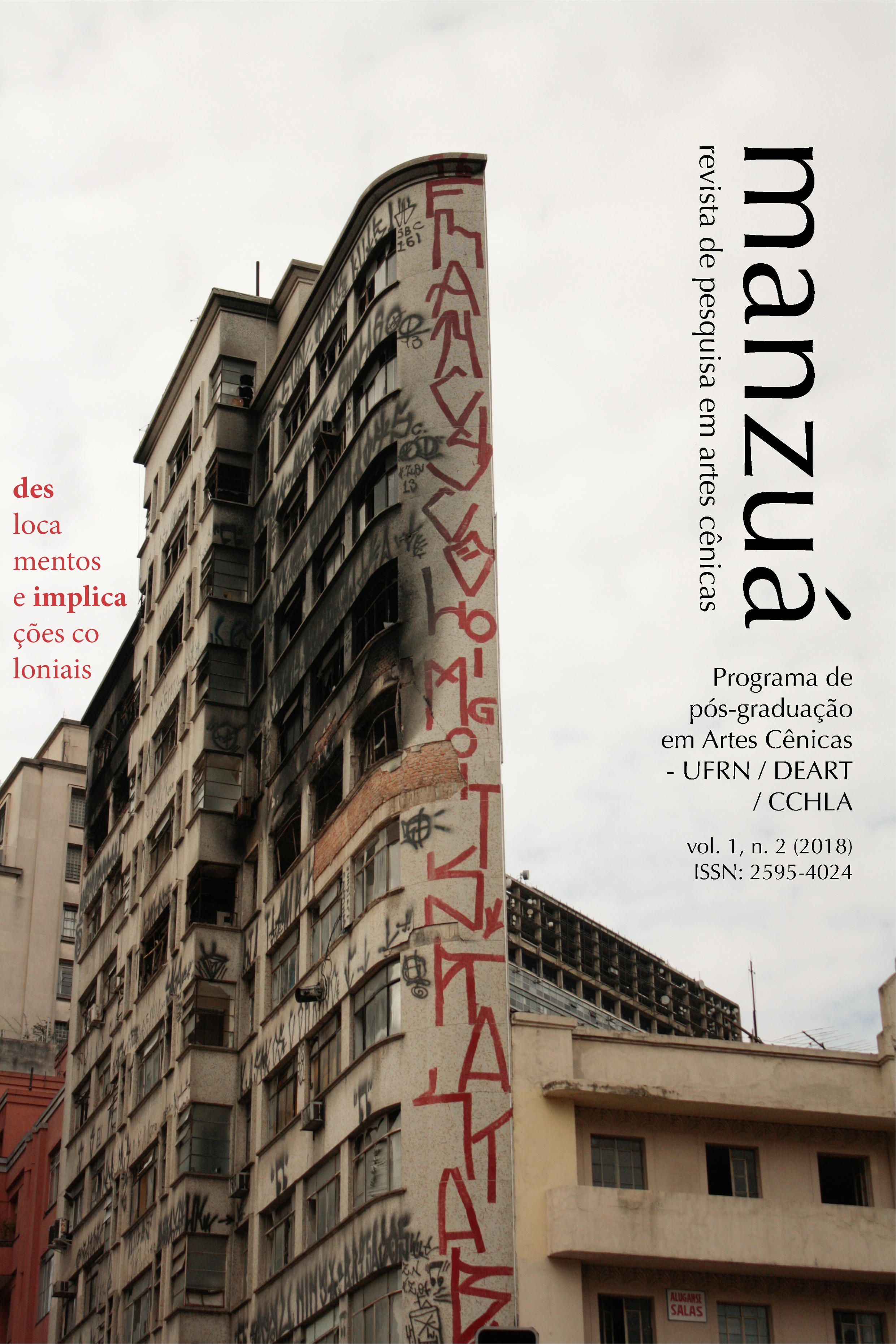 v. 5 n. 1 (2022)A Revista Manzuá de Pesquisa em Artes Cênicas é realizada pelo Programa de Pós-Graduação em Artes Cênicas da Universidade Federal do Rio Grande do Norte (UFRN), indexada pelo OJS. Manzuá é publicada em acesso aberto, gratuito, e revisão por pares. Manzuá recebe manuscritos de estudiosos e autores que escrevem no campo das Artes Cênicas (Teatro, Dança, Performance, Circo).