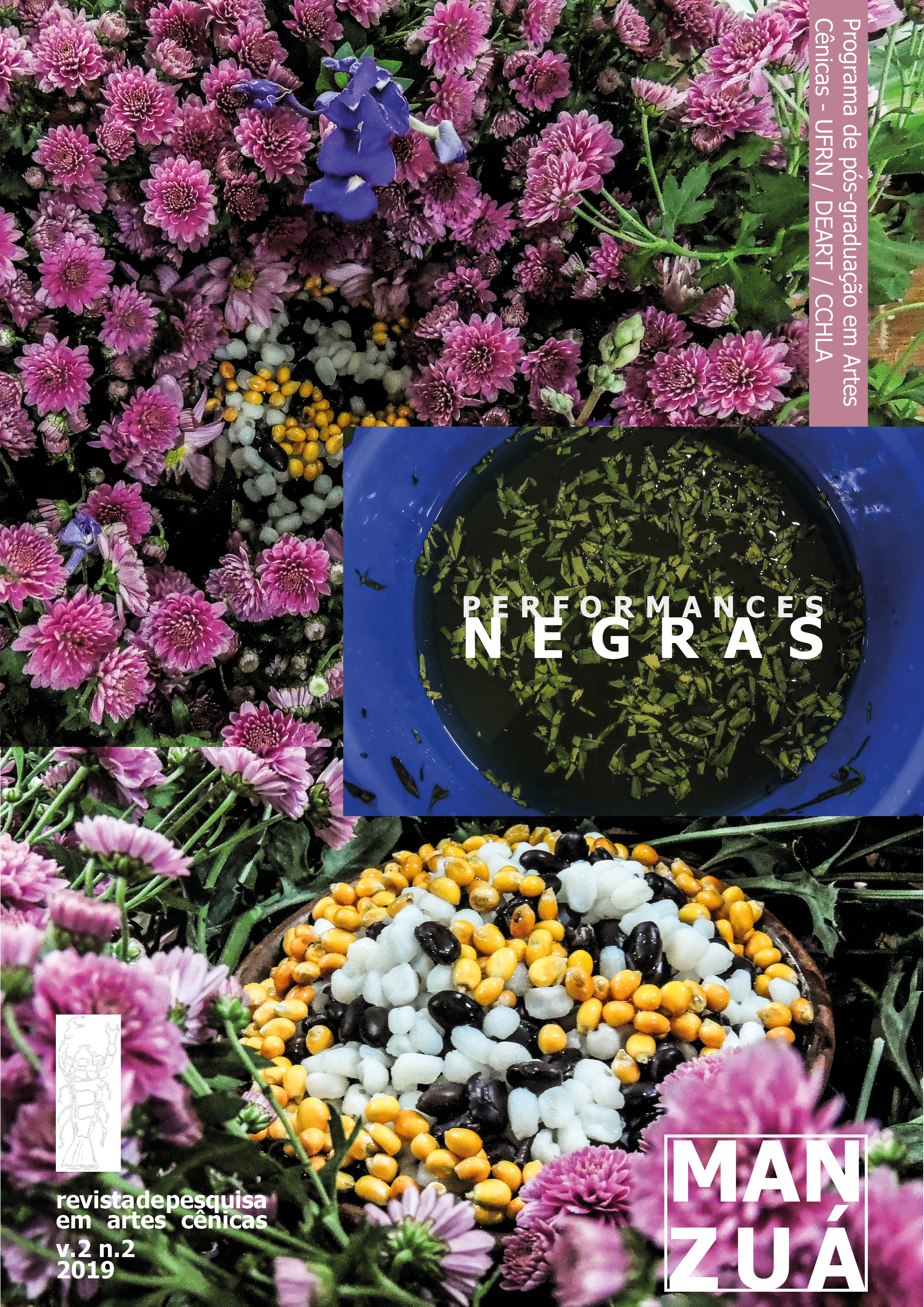 v. 2 n. 2 (2019)Performances negras é o tema da quarta edição da Revista Manzuá, parece estar havendo no atual cenário do teatro a ocorrência marcante do corpo negro. As performances negras vêm ganhando outras escrituras, como a produção de Ayrson Heráclito. Sua obra provoca novos circuitos temporais e estéticos. Surge a possibilidade de visibilidade. As performances negras contemporâneas produzidas longe das capitais. Vozes vindas de um fora, ressoam preconceitos e paranoias. Como lidar com esta produção de indivíduos vistos como subalternos, que convivem com broncas, chamadas, ironias: convivem com os apagamentos. -